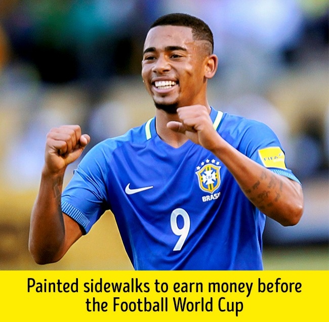 ▼加布里埃爾赫蘇斯(Gabriel Jesus)-他曾靠畫人行道賺錢:這位巴西足球運動員加入了著名的曼徹斯特俱樂部。但踢世界盃之前,他的工作是畫人行道。現在他的週薪是8萬美元(約台幣240萬元),而且前途不可限量。