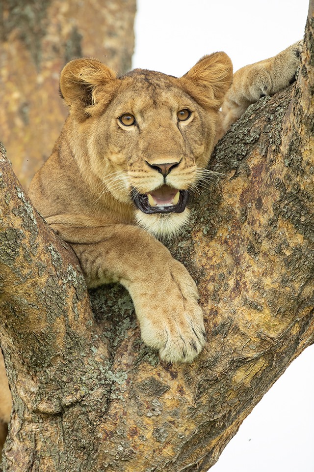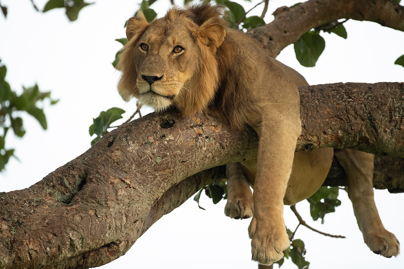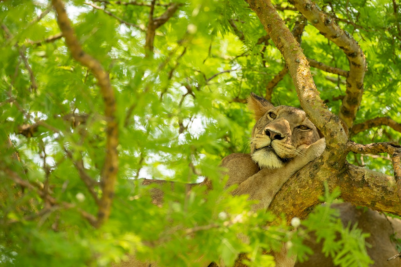 ▼炎熱的天氣,同樣身為貓科動物的獅子,最喜歡爬到樹上乘涼了!