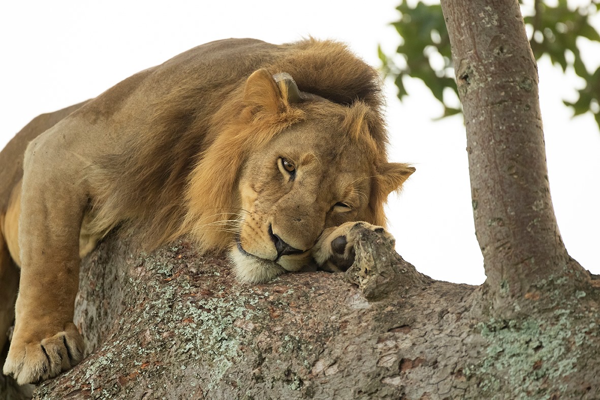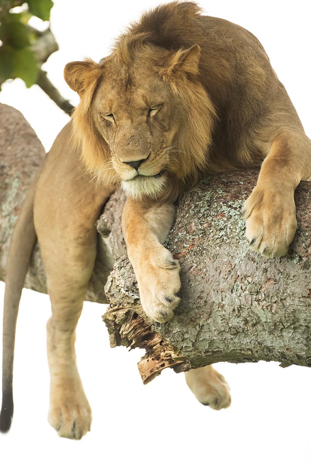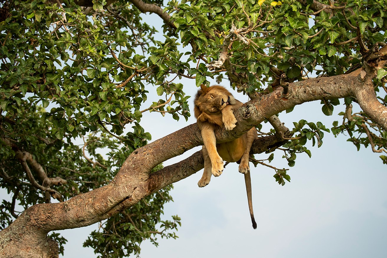 睡到太忘我!萬獸之王「高掛樹上」露肚腩 大叔模樣太有喜感