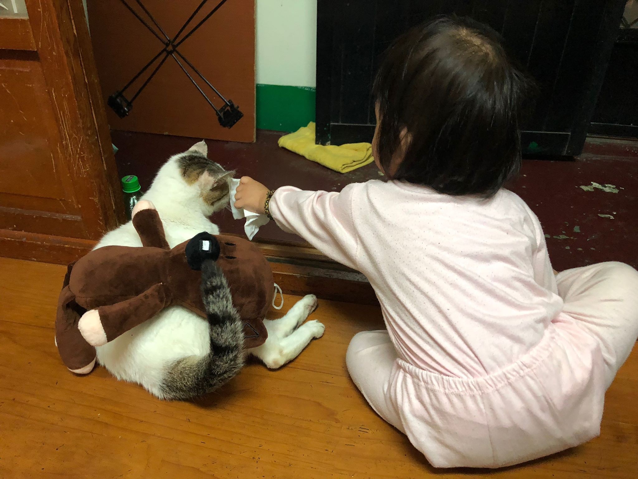2歲女兒「陪喵曬肚看星星」畫面超有愛 媽媽分享育兒觀念獲網友大讚