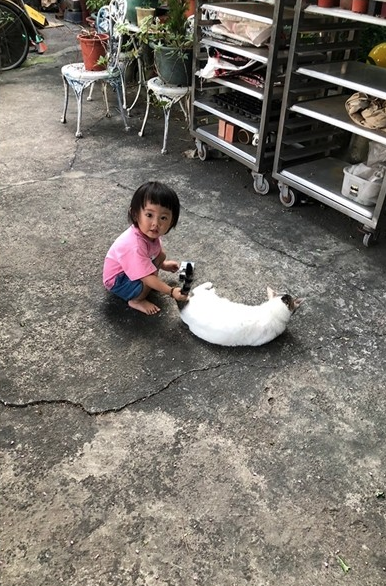 2019年07月31日陪貓咪看星星的小女孩太可愛啦~苗栗市網友Cheryl Chen家裡有一個2歲的女兒和一隻叫做「阿貓」的貓咪,他們的感情非常好,女兒幾乎每天都會跟貓咪膩在一起玩。某天晚上,當阿貓在石頭地曬肚肚時,2歲的小主人居然也跑過去模仿一樣的動作!