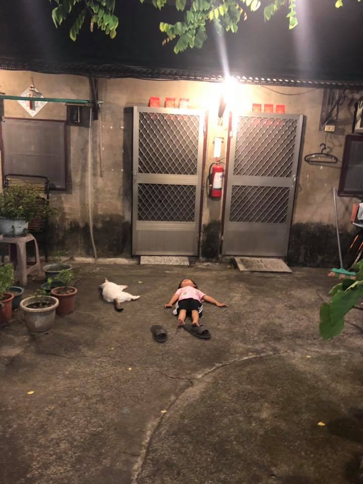 ▼小主人看到阿貓躺在院子的地板上好像很舒服,居然也馬上衝到牠身邊躺下,用同一個視角望向天空~這一幕也讓媽媽看到心融化,忍不住拍下照片分享給大家看。然而,當有人說地上可能會很髒時,她的智慧回覆讓大家都激讚!