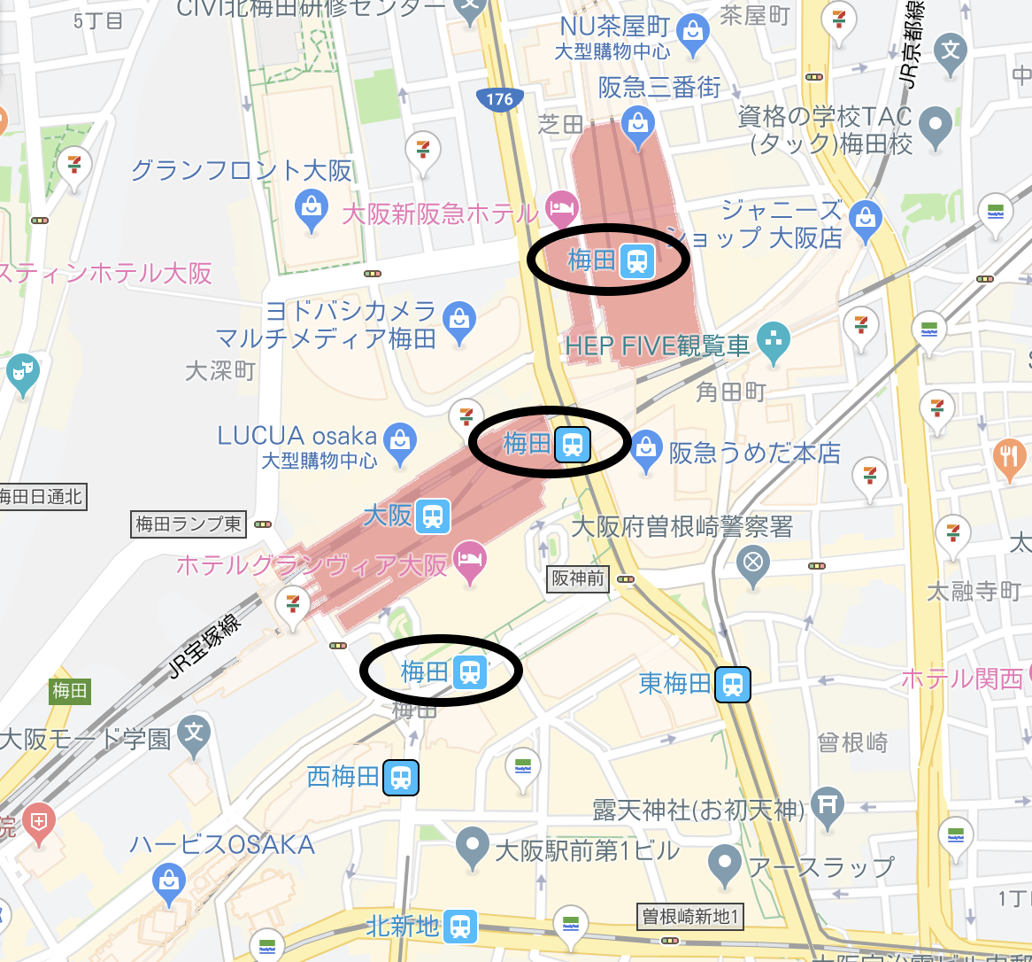 ▼過去大阪車站周邊的「梅田站」問題已經讓人抱怨多年,由於日本鐵路有許多線道,而每一條線路在大阪站都有不同的名稱,導致「大阪站」與「梅田站」是同一個車站,而且其中梅田又分為阪急、阪神、大阪Metro(地下鐵御堂筋線)三個梅田,讓人摸不著頭緒。