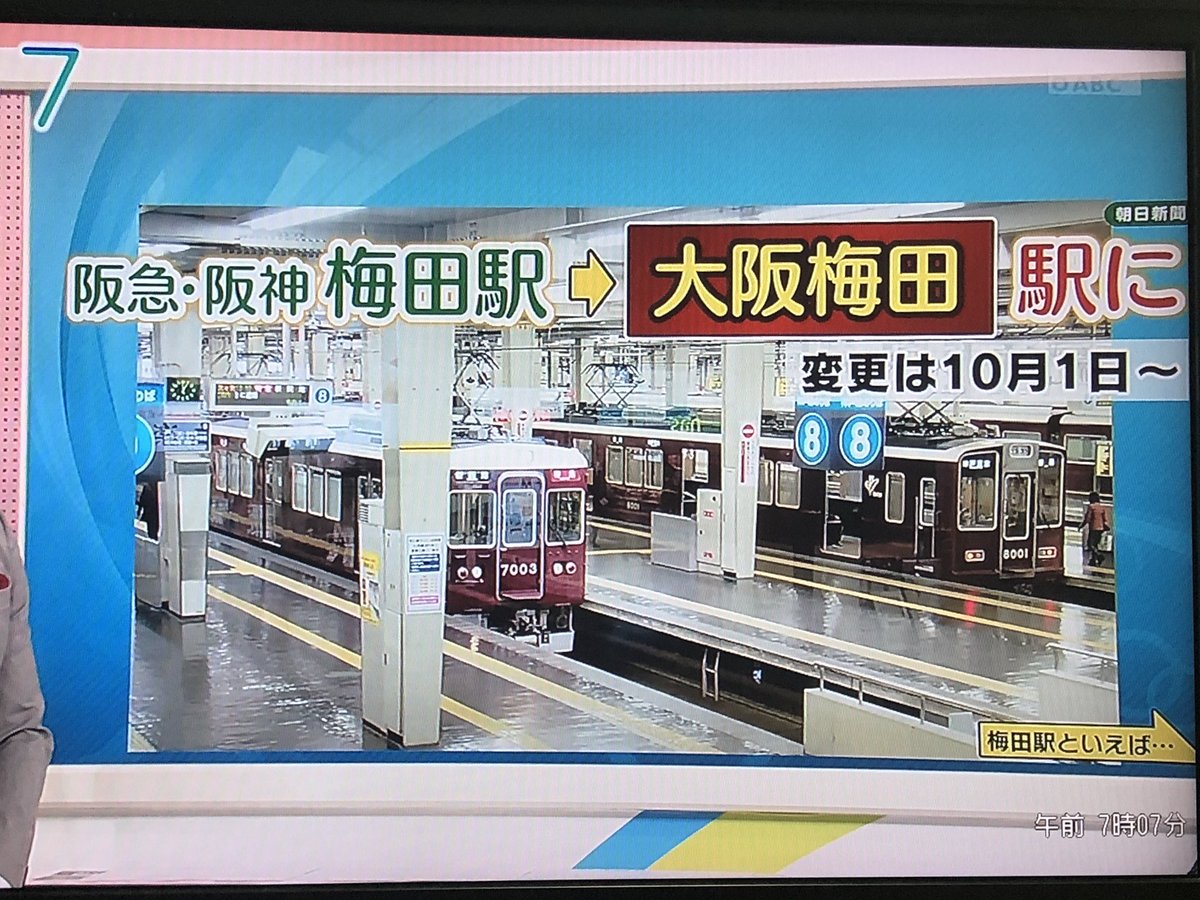 ▼於是阪急、阪神電鐵宣布10月起將「梅田站」改名「大阪梅田站」,用以說明梅田站與大阪站是同一站,進而讓遊客可以弄清楚地理位置。