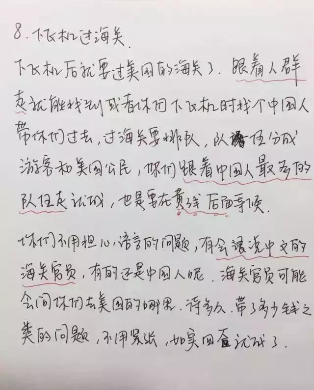 2019年08月04日對從未出過國、又不懂英文的人來說,出國是一件很麻煩的事,出入境就是個大問題。不久前,大陸一對年近60歲的父母決定赴美探望剛剛生下孩子的女兒,但他們不知道該怎麼做。貼心的女兒為他們手繪了超詳細的指示,其中還有貼心的注意事項和叮嚀,讓人覺得超暖心。