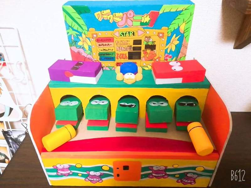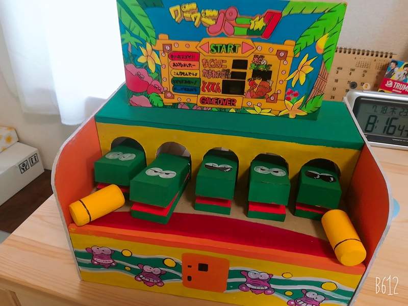 ▼日本網友 @donqo_hand 分享了就讀國三的女兒用紙箱做出來的打鱷魚機作品,還表示這都是女兒自己獨力完成的!
