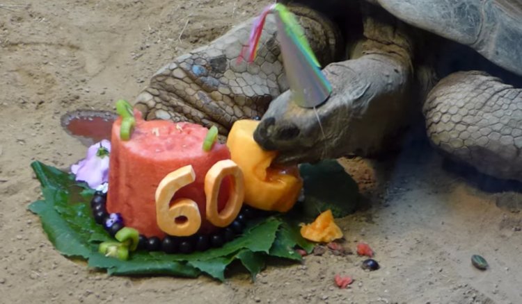 動物園為老龜慶祝60大壽! 「特製蛋糕」遊客看了狂點頭:這一定好呷