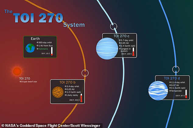 ▼研究團隊透過TESS 衛星再從73光年外找到3顆存在於「TOI-270」恆星系統的行星,他們發現母恆星是一顆老年M型紅矮星,品質和大小約太陽的40%。