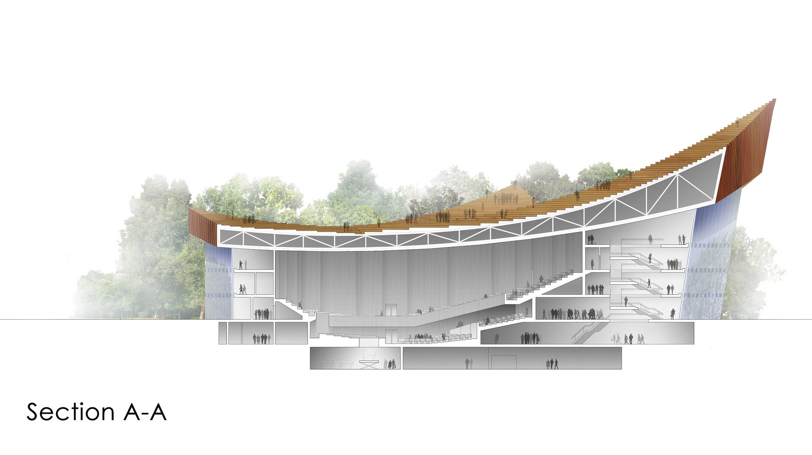 ▼這座音樂廳位於市中心,周圍有很多社區。為了讓建築與環境融為一體,方便人們生活、娛樂,建築師對屋頂做了獨特的設計。