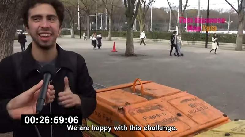 ▼這位YouTuber在路邊找了幾位外國觀光客,讓不熟悉當地情況的觀光客去找垃圾桶。第一位實驗者花了26分鐘,終於在澀谷的代代木公園找到垃圾桶。找到時他超開心。