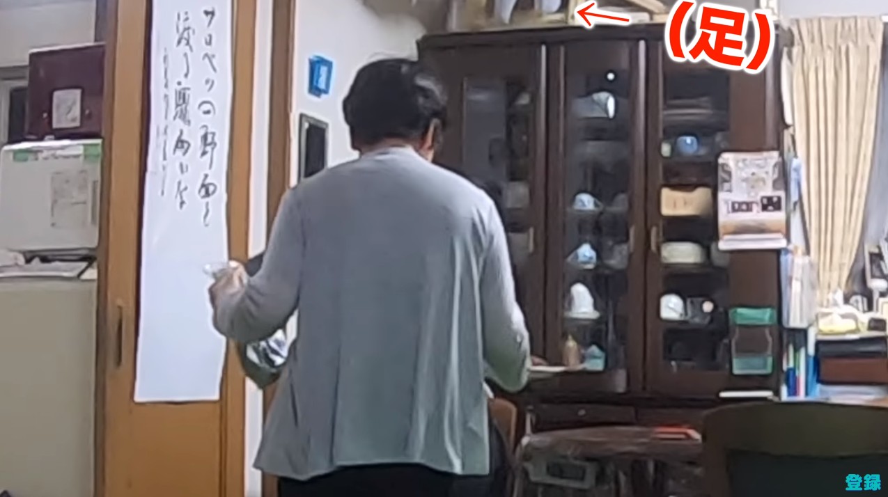 ▼當阿公假意離開後,奶奶仍然完全沒有留意到天花板上的「驚喜」。