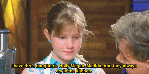「我有三個女兒,她們跟你一樣很常在廚房裡流淚。」