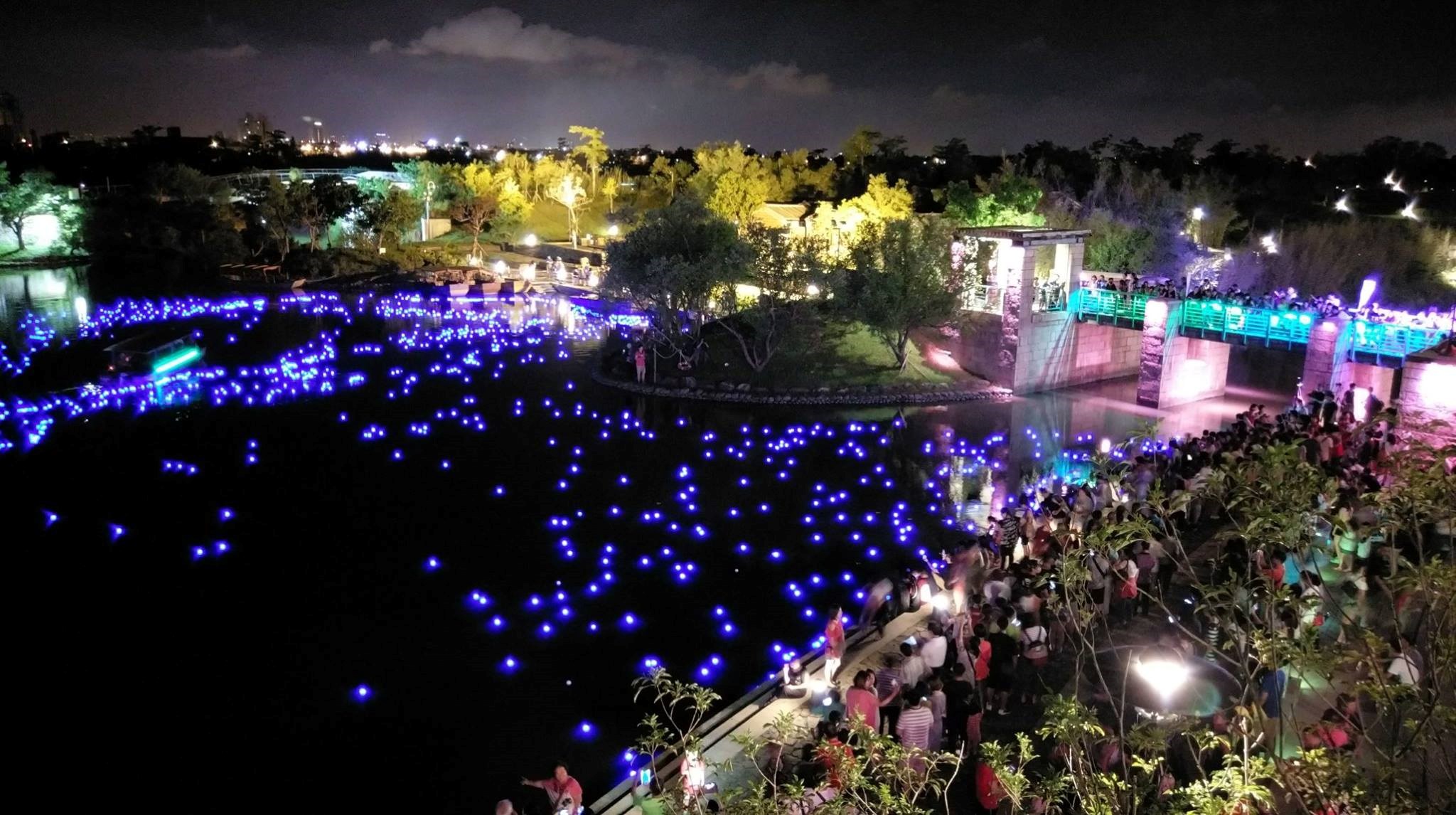 2019年08月08日雖然七夕已經過了,但浪漫的氛圍依舊不減,以往在七夕前後舉辦浪漫活動的宜蘭傳統藝術中心,今年仍然不讓民眾失望,數以千計的LED球燈「祈緣星」,讓整個湖面散發出微微藍光,一眼望去彷彿看見馬祖的藍眼淚美景!除此之外,今年加碼打造出「水上夜光版雙心石滬」,也是必拍打卡熱點!