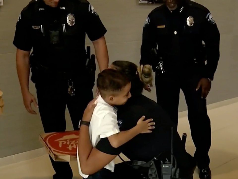 ▼Manny的媽媽知道這件事後,專門買了一盒披薩,和孩子們一起送到警局,向警員們表達感謝。