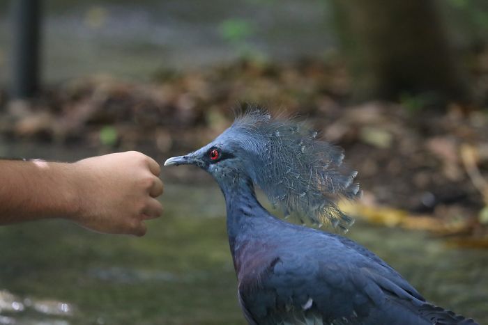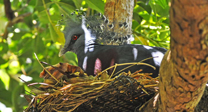 ▼雖然在原生地,維多利亞鳳冠鳩沒有天敵,但因為人類活動的影響,牠們的數量已經很少了。幸好這種鳥容易養殖,長得也漂亮,但野生和圈養畢竟還是有差別的。