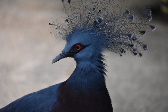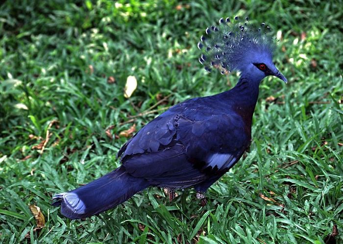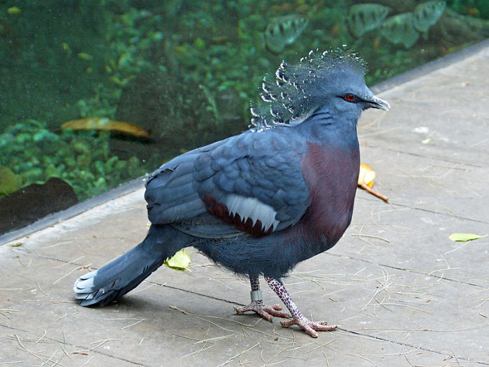 ▼維多利亞鳳冠鳩長著宛如皇冠一般的冠羽,胸部的羽毛呈暗紫紅色,紅色的眼睛周圍還有黑色的「眼線」,腳上穿著「網襪」,簡直是走在時尚前沿的鳥界明星。