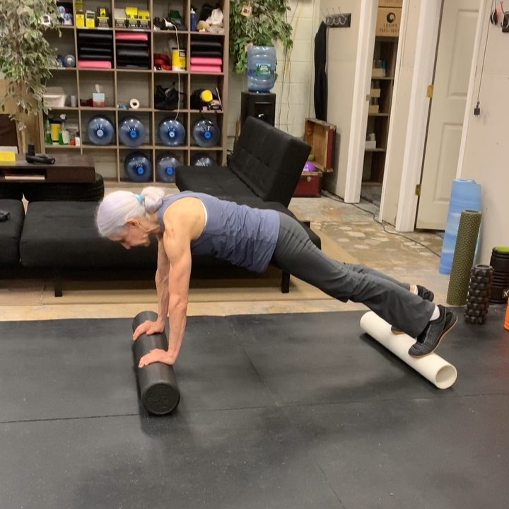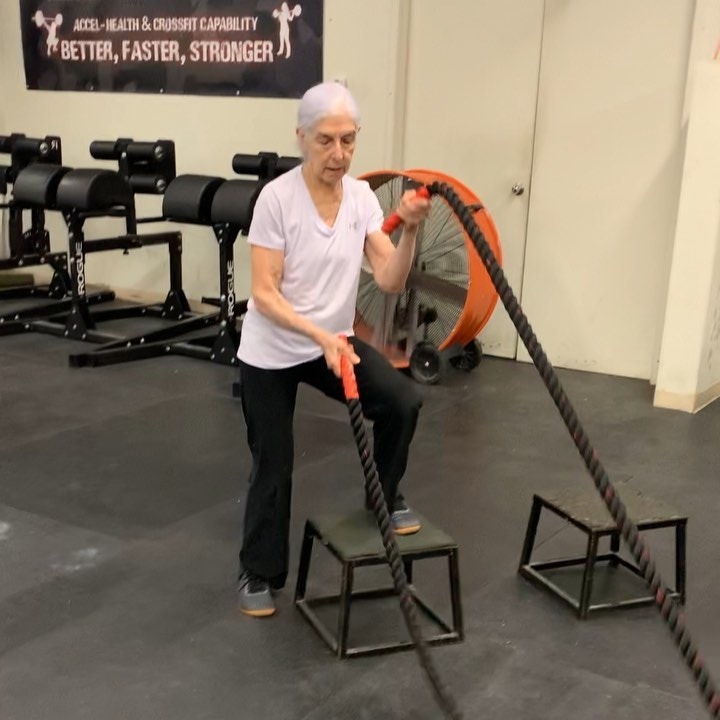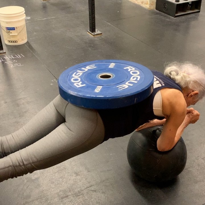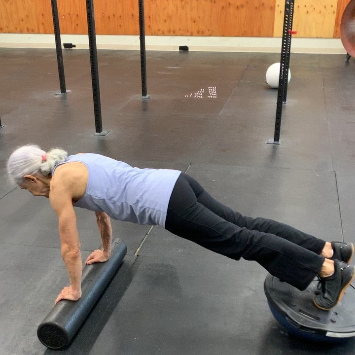 ▼她不僅做重訓,還會做核心肌群、四肢協調的訓練,訓練強度不輸給年輕人。