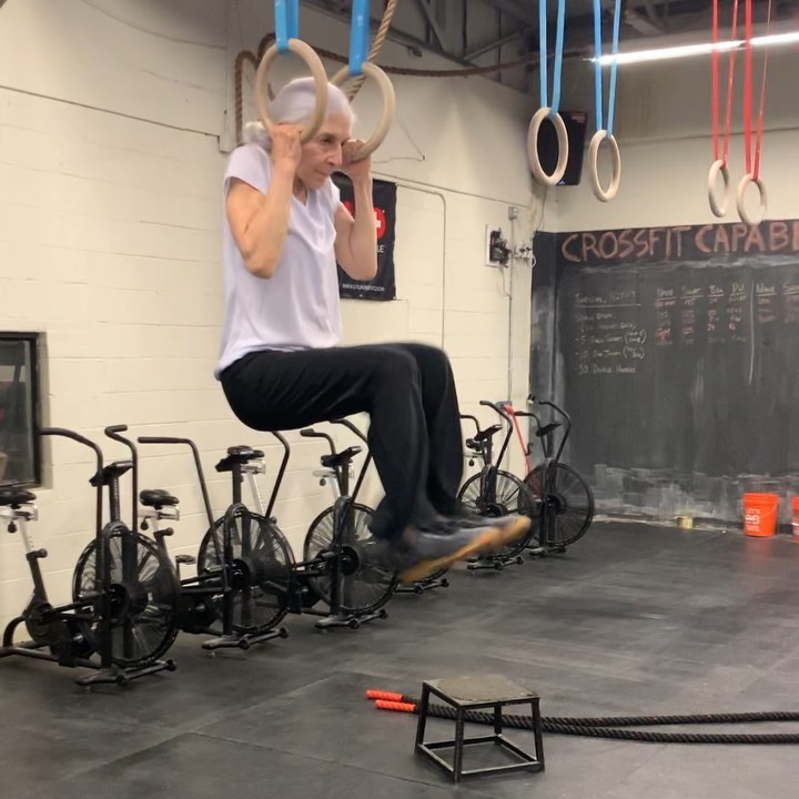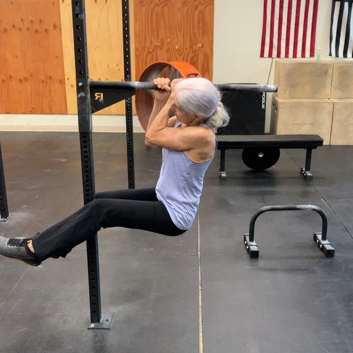 ▼Lauren接觸健身時已經滿頭白髮,她到健身房試著拉單槓,但努力了好久還是沒辦法把身體拉上去。