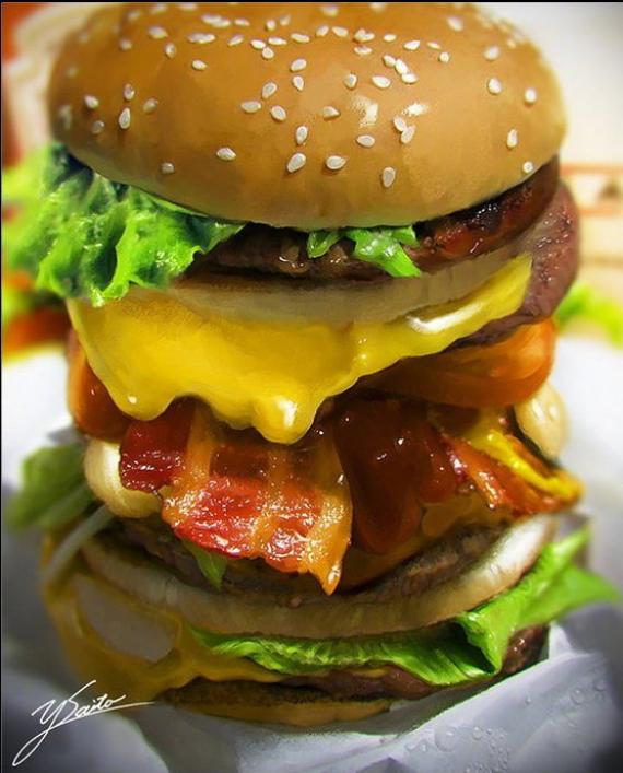 「逼真美食」系列畫作讓大家真假莫辨 牛排、漢堡完全像是實拍照片