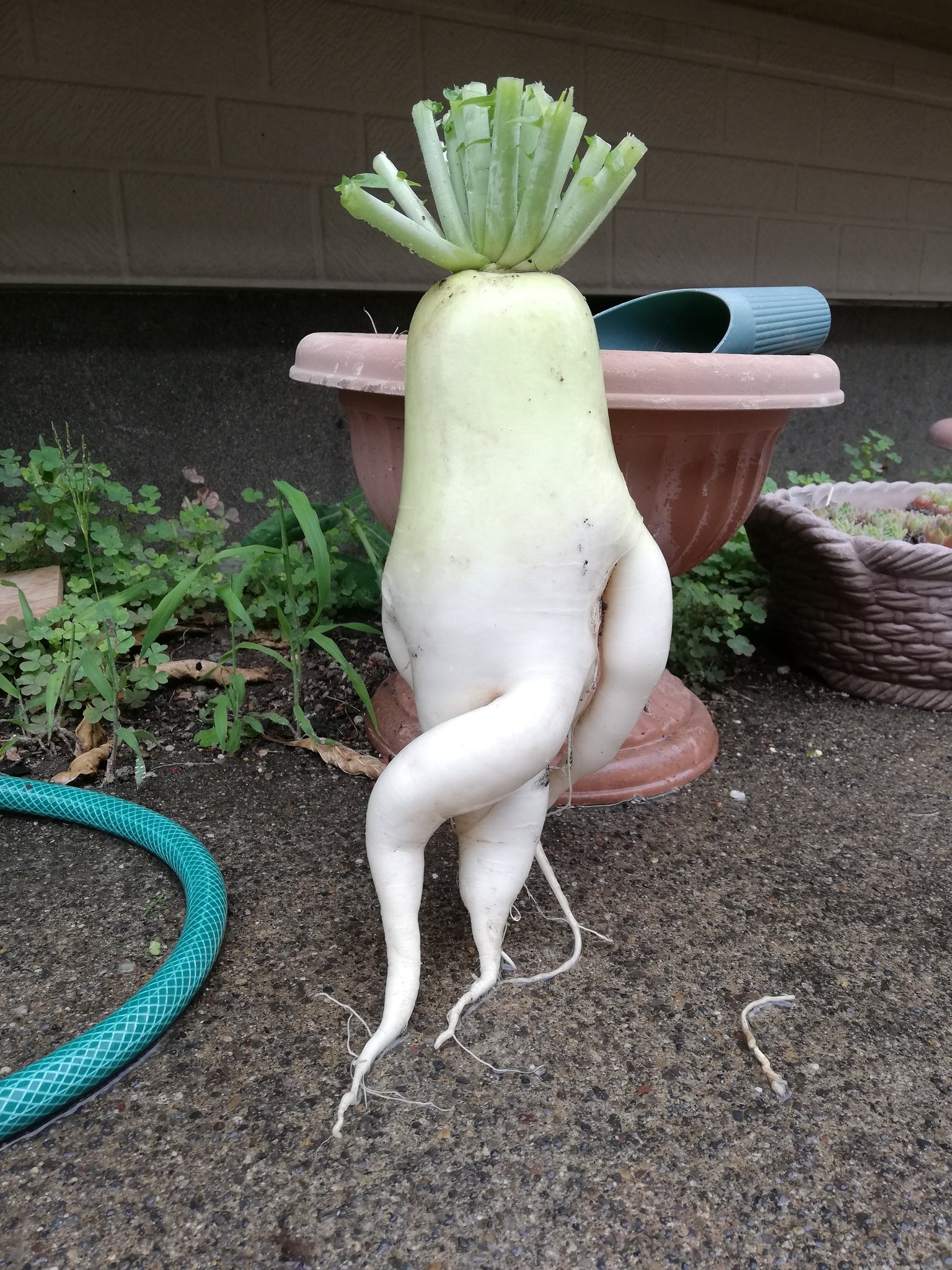2019年08月14日白蘿蔔很常見,但「長出腳」的白蘿蔔就稀奇啦~日本一名網友po出幾張照片,說這是「史上姿勢最美的白蘿蔔」。大家看到後都很讚同,因為這顆白白胖胖的白蘿蔔造型奇特,看起來非常妖嬈,真的很不可思議。
