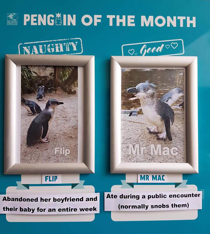 2019年08月15日很多公司都會評選「最佳員工」,鼓勵大家努力工作。紐西蘭國立水族館(National Aquarium of New Zealand)卻獨辟蹊徑,選出「月度最調皮企鵝」,還有「月度最棒企鵝」。他們將企鵝的照片、被選出的理由全都公布出來,大家看到後都笑翻了。
