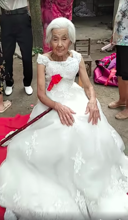▼阿嬤頭髮花白,臉上滿是皺紋,但穿著婚紗的她仍舊是最美的新娘。