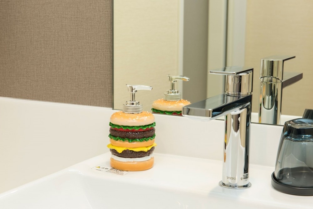 ▼洗手台上的洗手乳也是漢堡造型,真的太可愛了!
