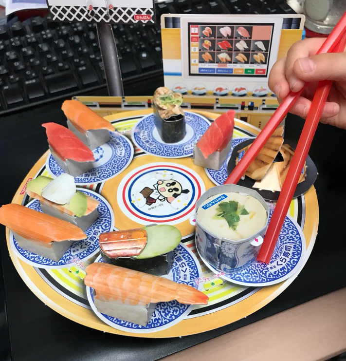 ▼然而,他在2018年去吃藏壽司(くら寿司)時,發現小朋友對迴轉壽司有極大的興趣,於是找到靈感想要做出迴轉壽司小玩具,讓樂趣延續到附錄之中。