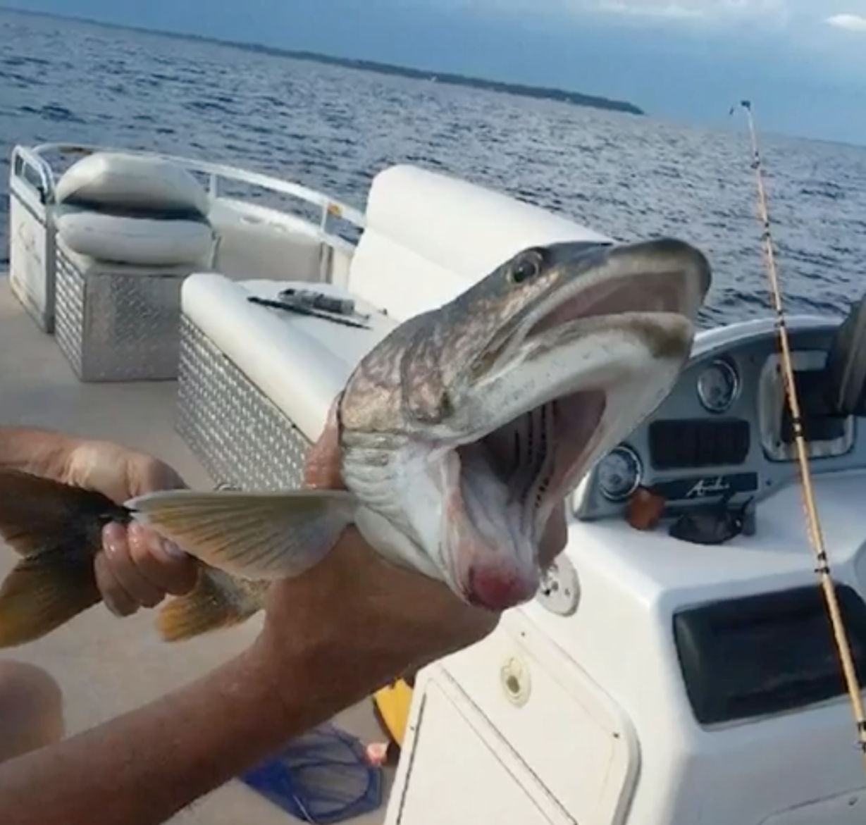 2019年08月23日兩張嘴的謎樣生物!美國紐約女子紀德斯(Debbie Geddes)在尚普蘭湖釣魚時,她完全不敢相信自己居然釣到罕見的魚,牠的嘴巴竟然有超過一個…臉書粉專「Knotty Boys Fishing」發言人也覺得怪,直呼是前所未見的怪事!