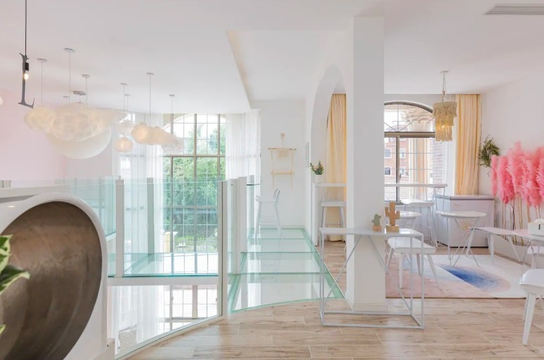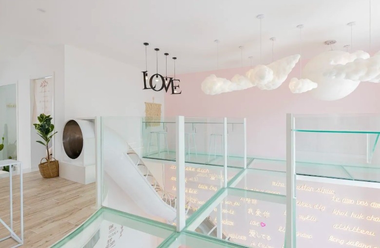 ▼天花板上有雲朵裝飾,唯美的場景就像是置身夢境。