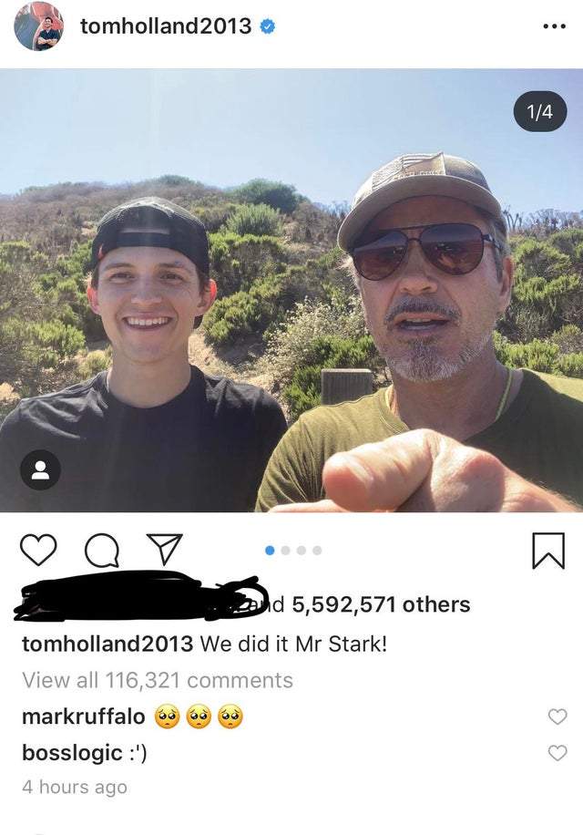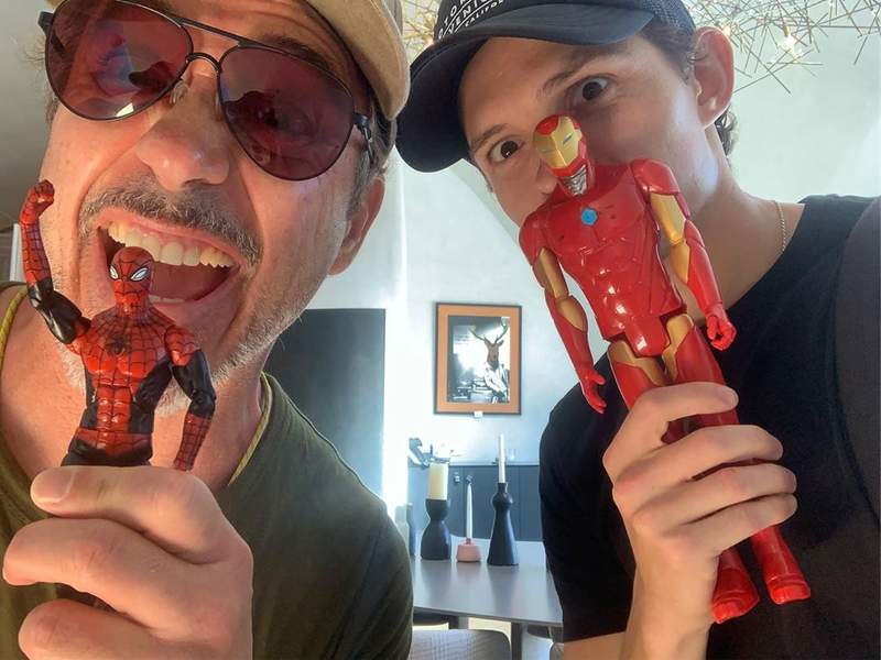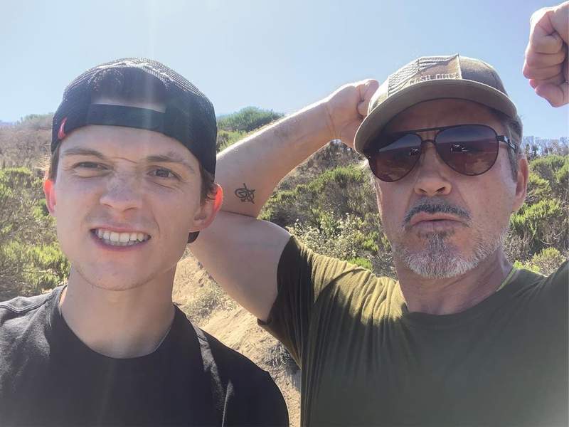 ▼對比兩人在戲中的父子情,現實中他們更像超越年齡的朋友,照片中充滿玩心,感情也非常好!湯姆霍蘭德寫道:「我們做到了,史塔克先生!」