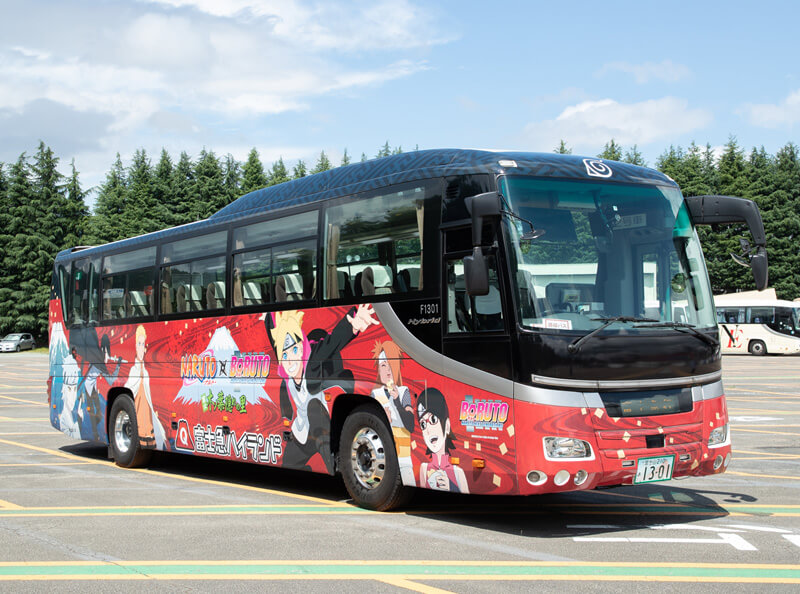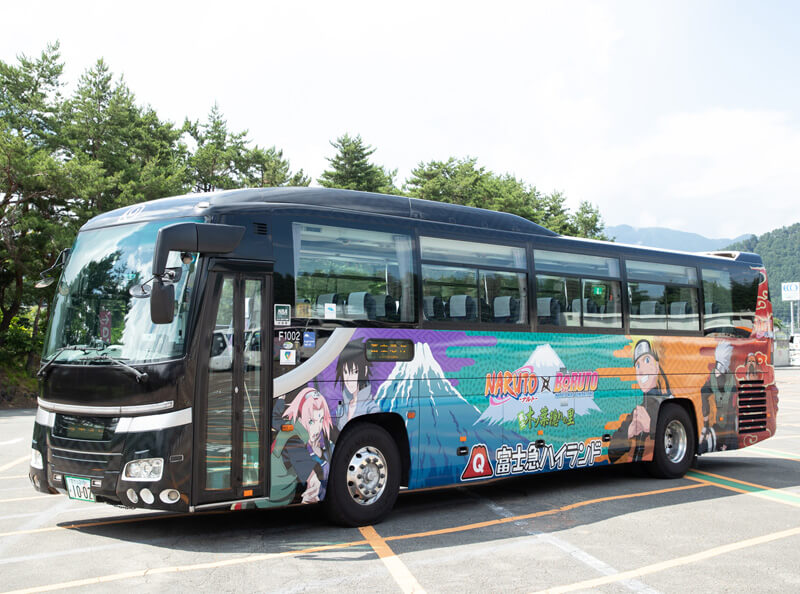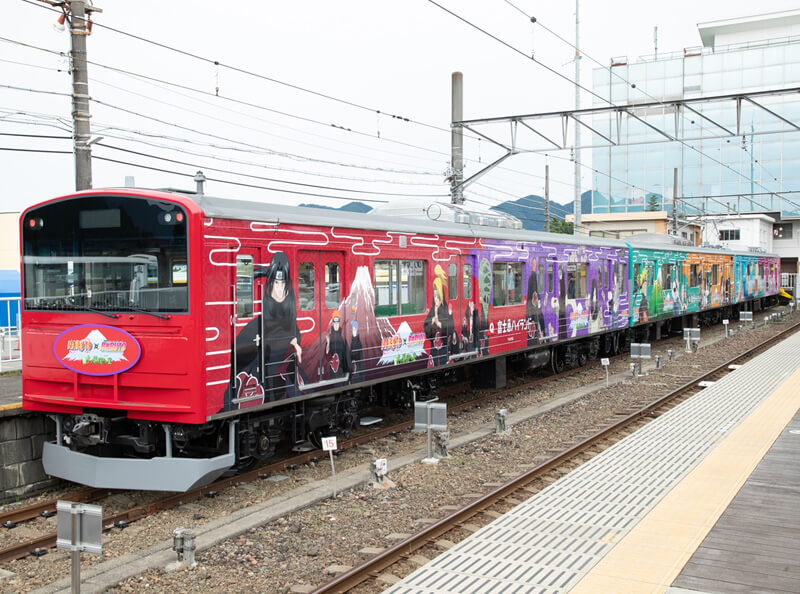 ▼9.造型列車/客運:富士急火影園區開幕後,大月站-河口湖站間的「富士快線」出現了超吸睛的造型車廂,以及富士五湖-新宿/東京等高速客運路線,也都畫上了初代《火影忍者》的元老級角色們與《慕留人傳》中的忍二代們~