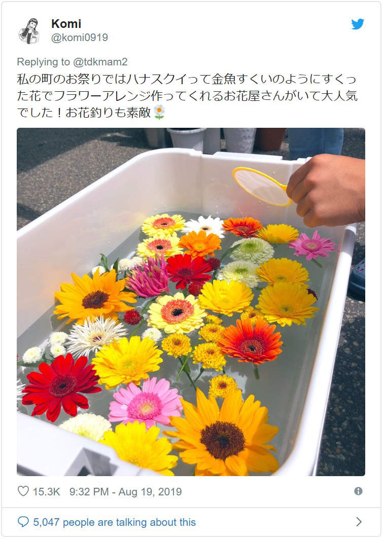 用鮮花代替金魚、水球,非常有創意,也很浪漫。這些傳統遊戲的進化,讓夏季祭典變得更有趣啦~