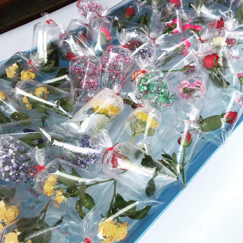 ▼現在一些商家用鮮花代替金魚,五顏六色的花比起金魚更漂亮,也更吸引人。