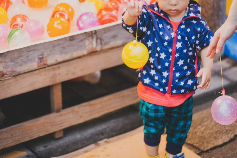 ▼除了撈金魚,釣水球也是日本祭典中的傳統遊戲。玩家用鉤子釣起五顏六色的水球,很有意思。