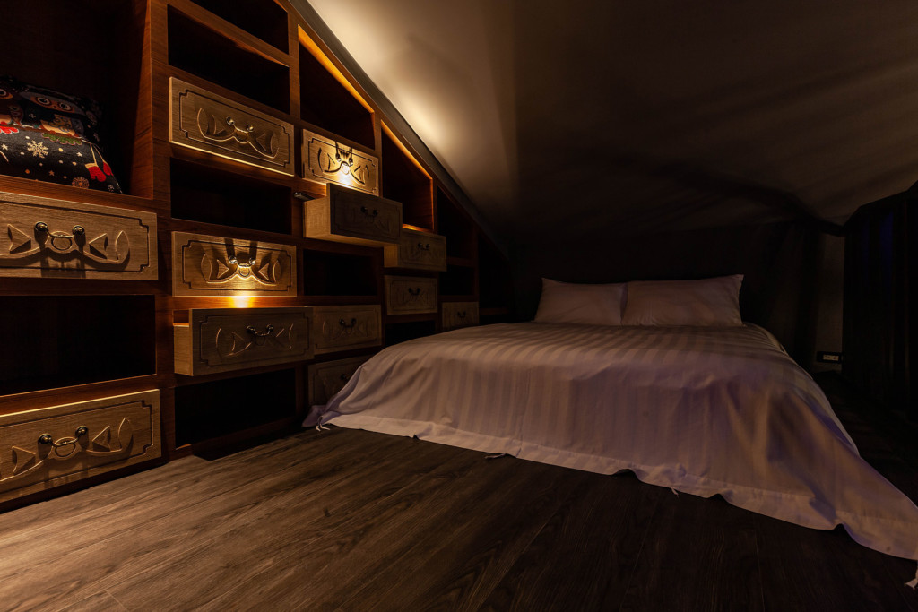 ▼至於民宿中的「魔幻古堡」房型,整體風格也沒有「走鐘」,完全營造出魔法世界的神秘感。
