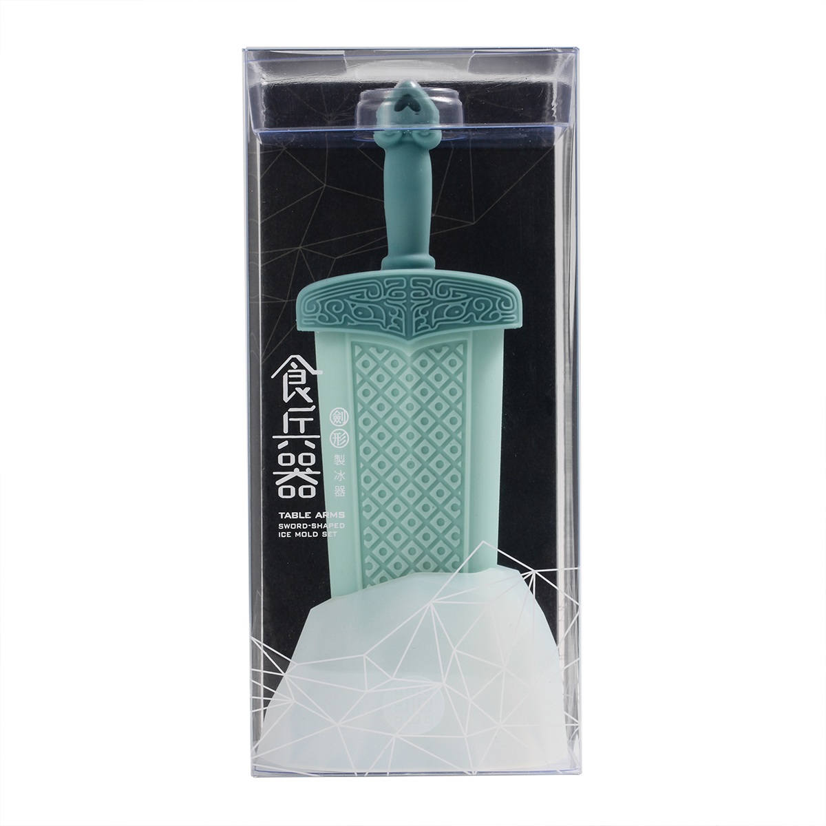 ▼劍形製冰器是用環保矽膠製成的,可耐零下40度的低溫,還有240度的高溫。劍鞘上有精緻的紋路,會印在冰棒上,讓冰棒看起來更精緻。