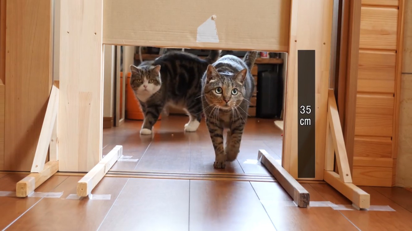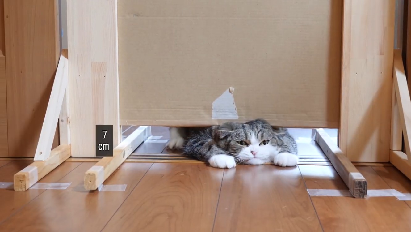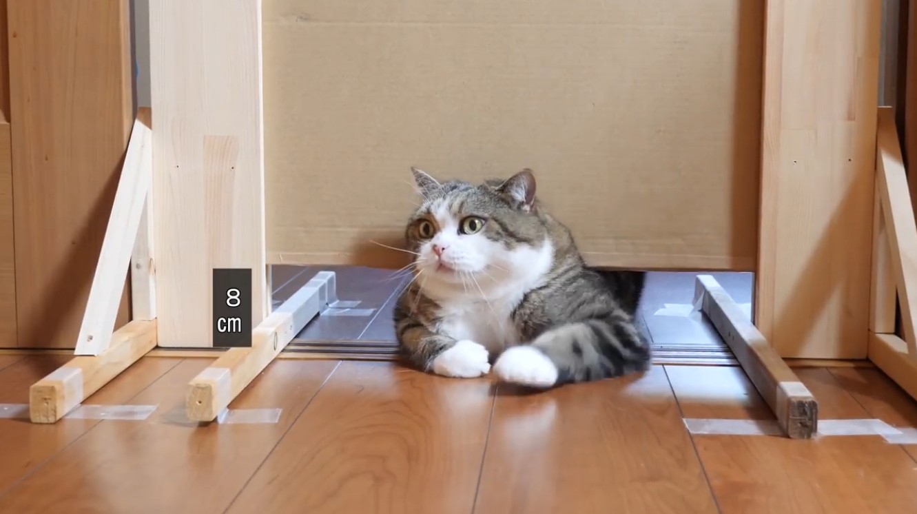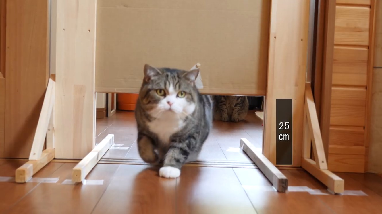 雖然網路上已經有著無數關於貓咪各種軟Q筋骨的照片和影片,不過相信很多人一定都很好奇到底貓咪的極限在哪裡吧!之前就有一名日本網友利用家裡的兩隻貓咪做了一個簡單的實驗,看看貓咪到底能夠穿過幾公分高的通道,大家覺得貓咪能夠完成多低的高度呢?