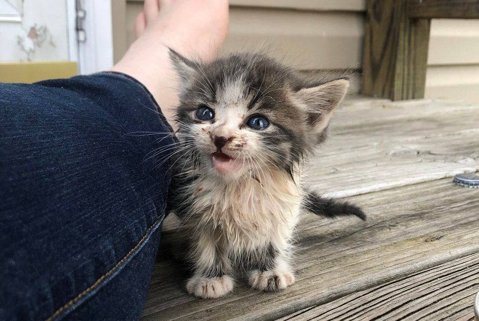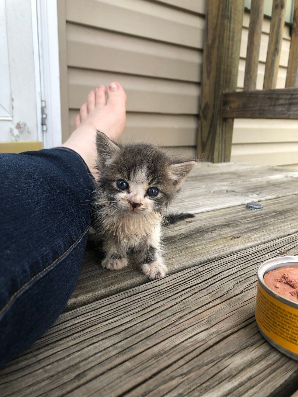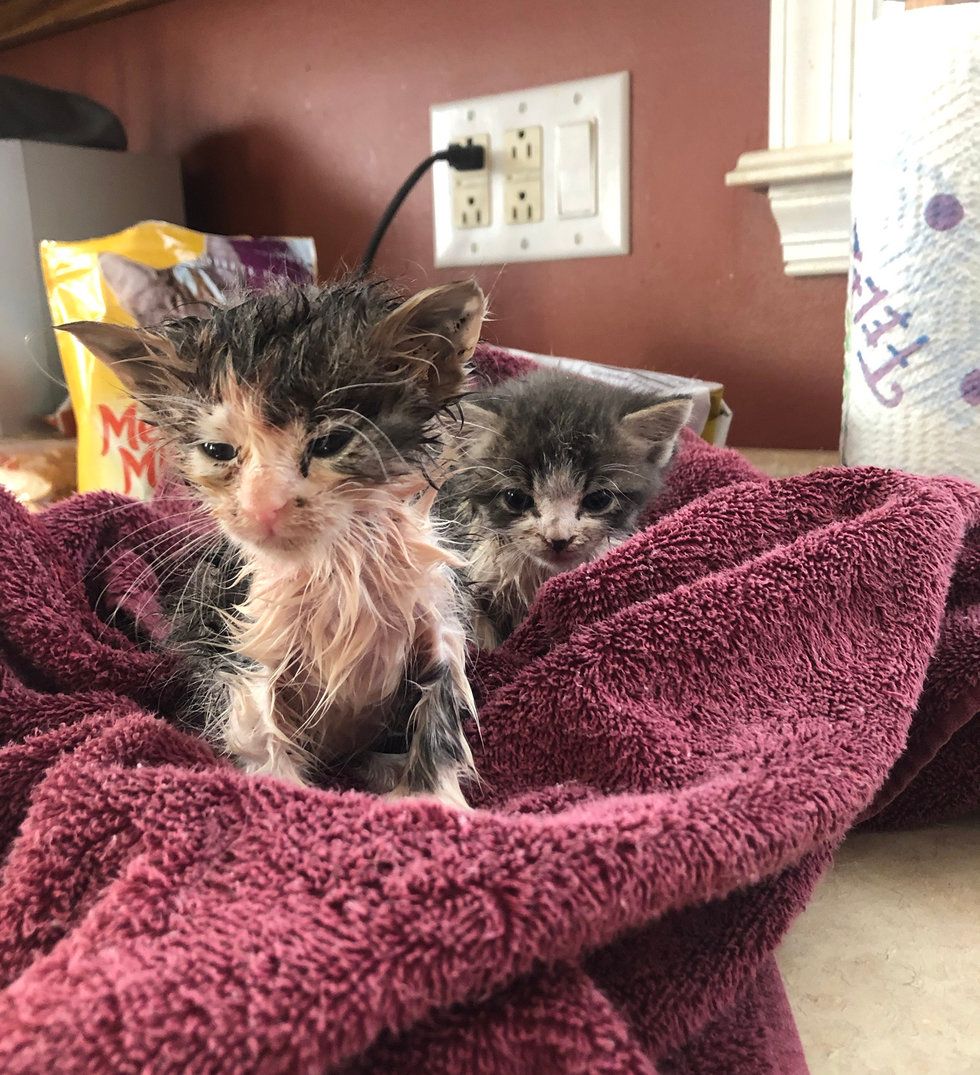 ▼那是另外一隻小貓,與Hannah懷中的這隻小貓是兄妹。Hannah將這兩隻小貓都帶回家,給牠們洗了好幾次澡,又給牠們餵了一些食物。她給哥哥取名為Theon,妹妹取名為Yara。