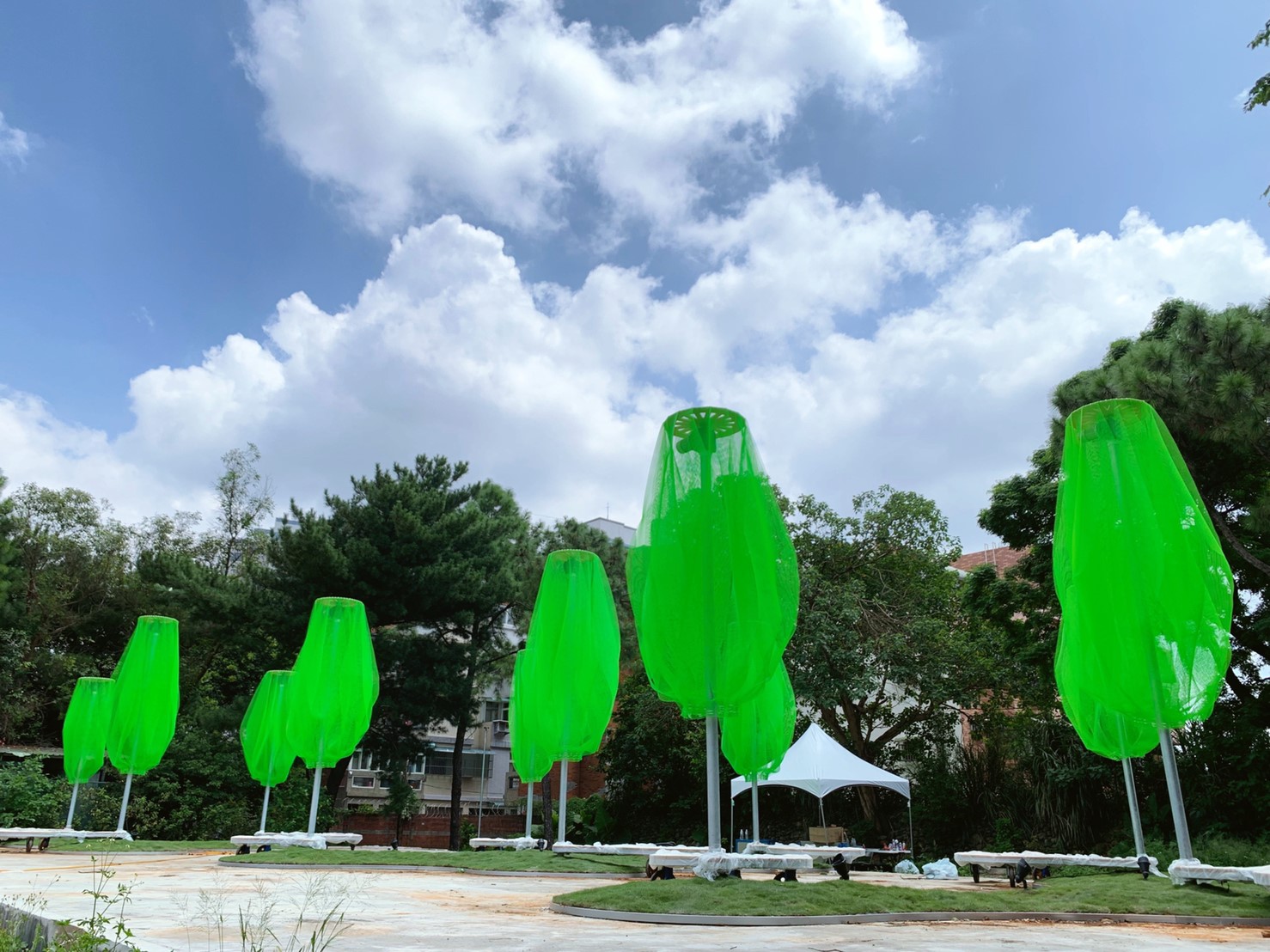 ▼你看過會轉的樹嗎?一棵棵的綠樹旋轉著,像是森林裡的都會聚落,靠著旋轉的離心力讓旋轉樹開枝展葉,《大湳轉綠林》是藝術家梁秀印的作品,讓我們今年一起跟著大湳轉綠林旋轉吧!