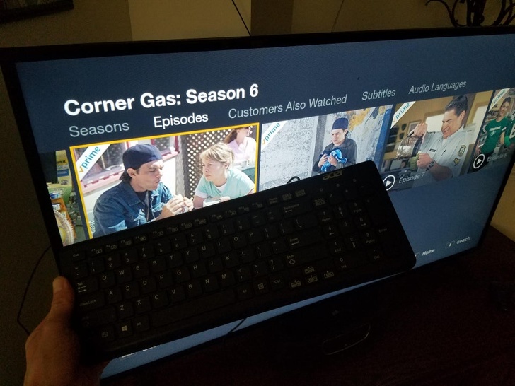 ▼他將鍵盤接到智能電視上,竟然真的可以使用!
