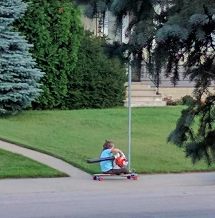 ▼她利用吹葉機和滑板創造出了一輛自行車!