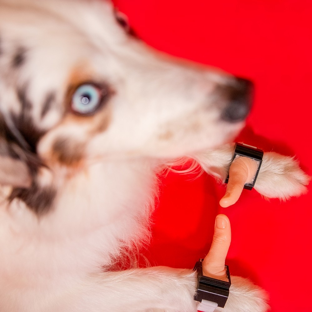 2019年09月02日創意設計品牌「Unnecessary Inventions」推出過很多有趣的小物,在全球吸引了近30萬粉絲。近期他們專門為狗狗設計了一款「手環」,狗狗戴在手腕上後,就能擺出「手指碰手指」的造型,看起來很專業~