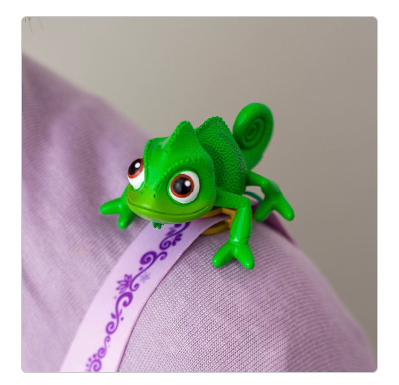 ▼繩帶上還趴著樂佩的寵物變色龍「帕斯卡」,小巧思實在好可愛。