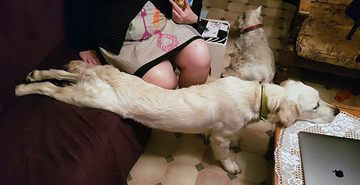 ▼狗狗懷孕了,這就是牠入睡的方式。