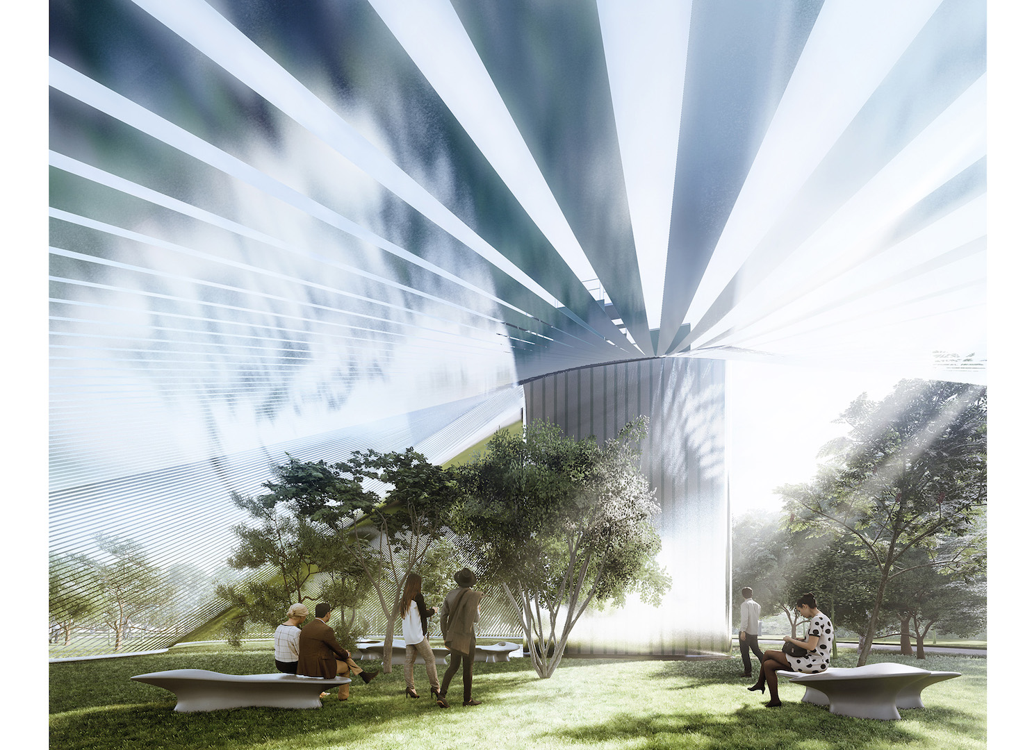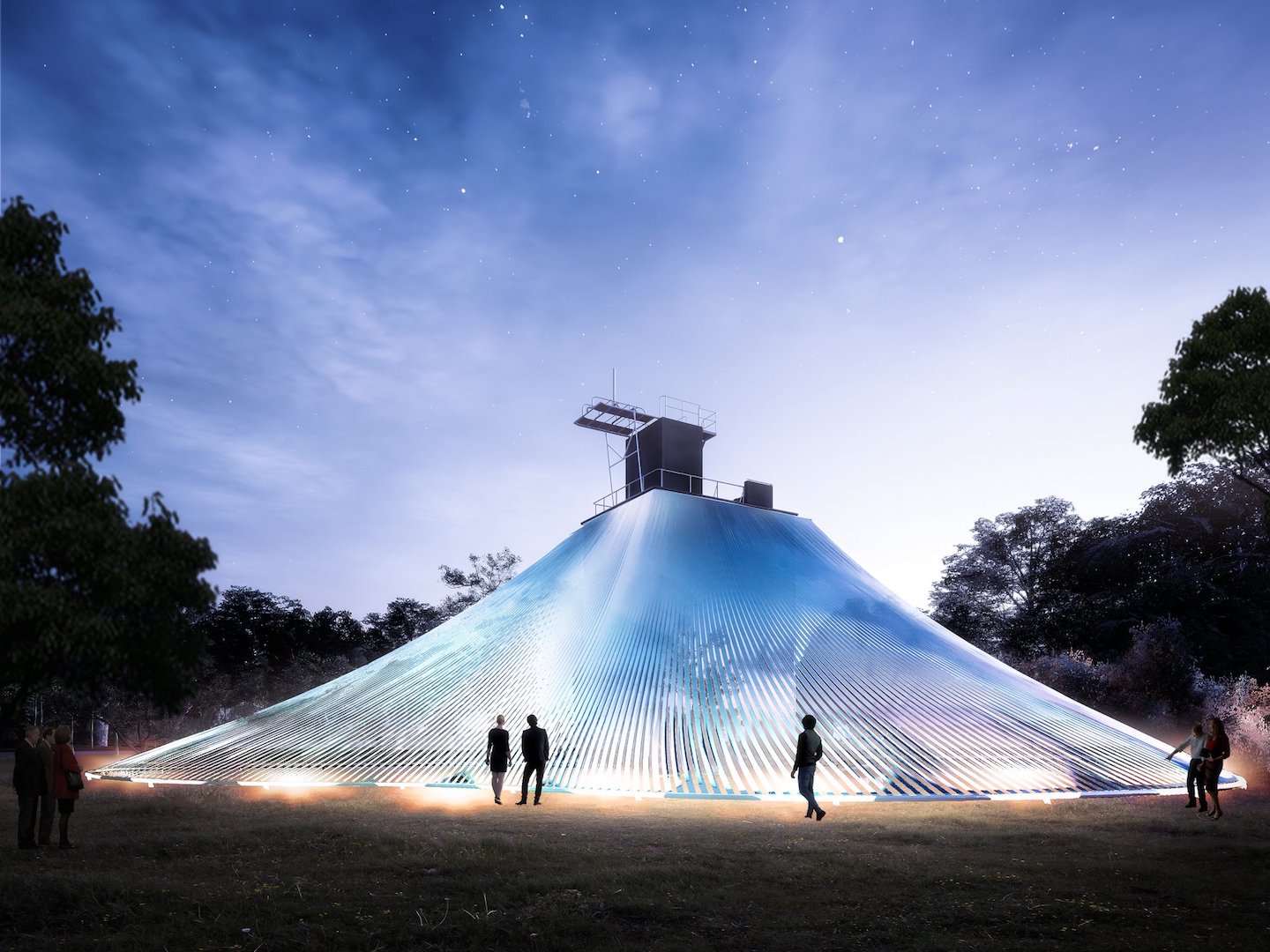 ▼自然舞衣:這項作品為原本部隊用的建築披上了一層美麗的薄膜,有如舞者的衣裳一般,隨風吹拂而動、任光影流瀉其上。當進入「裙擺」之中,又仿若走進了夢幻世界一般,享受奇妙的感官體驗。