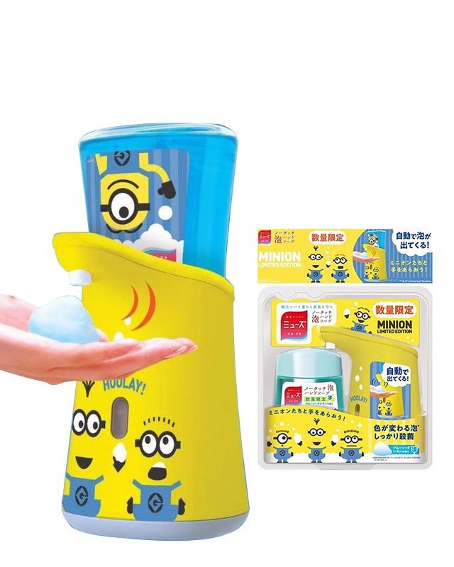 ▼「日本MUSE感應式泡沫給皂機組」超萌小小兵包裝設計感應式泡沫給皂機組零接觸,細菌不上手,不需按壓,伸手感應就有洗手泡泡 ,輕鬆好沖洗,使用真方便。
