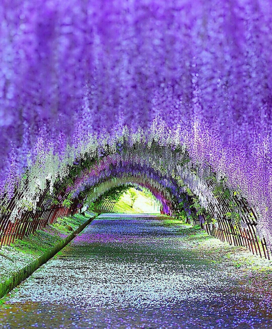 位於日本福岡縣北九州市的紫藤隧道,擁有大量的紫藤花懸掛在上方,漫步於隧道中簡直美得令人忘了呼吸,仿佛置身於童話世界的場景當中!