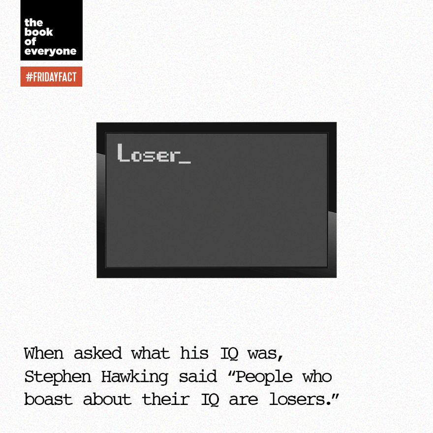 ▼史蒂芬霍金在被問到 IQ 有多高時,回答「只有魯蛇才會一直吹噓自己的智商。」