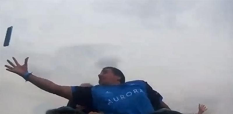 ▼Samuel搭雲霄飛車時抓住天降手機。